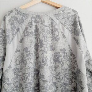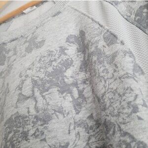 • Long sleeve pullover sweatshirt top in grey flower pattern with mesh panels.