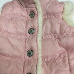 OLD NAVY 6-12 MOS PINK PUFFER VEST JACKET FLEECE LINED WITH IMITATION FUR. PET AND SMOKE-FREE HOME.