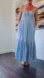 Embrace a breezy summer vibe with this sleeveless maxi dress from Old Navy, featuring a tiered, ruffled design in refreshing blue and white stripes. Adjustable spaghetti straps and neckline and airy fabric make it an ideal choice for casual outings or resort wear, ensuring comfort and style in warm weather.