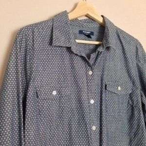 OLD NAVY Chambray Polka Dot Blue Button Down Shirt Sz L