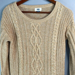 Women’s Sand Dune tan Old Navy “Classic Cable Knit Pullover” Sweater.