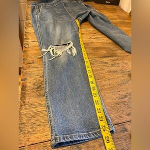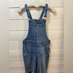 OLD NAVY - Distressed Denim Overalls with Side Zip - Size 8 Petite