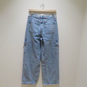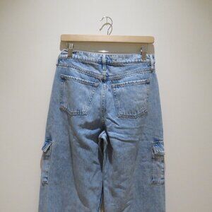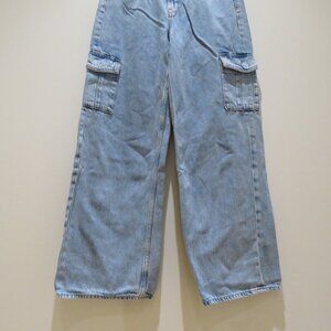 OLD NAVY Extra High Rise Sky-Hi Wide Leg Secret Smooth Cargo Pocket Jeans in Light Wash - Women's Size US 4