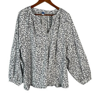OLD NAVY Liberty Floral Peasant Top Long Balloon Sleeve Split V Neck Navy XXL