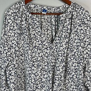 Women’s navy blue and white Old Navy poplin Ditsy Floral Peasant Top.
