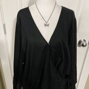 OLD NAVY Plus-size adjustable black v-neck wrap blouse goth 2X XXL 3X XXXL shirt