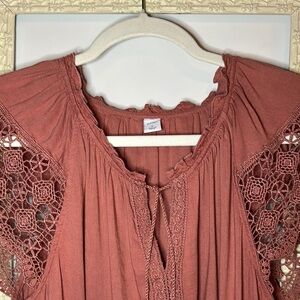 OLD NAVY | Relaxed Tie-Neck Crochet-Lace Sleeve Blouse in Rust