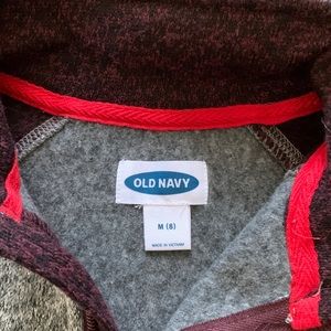 This sweatshirt was a gift so the tag has been taken out when wrapped. But my kid is on the taller side of an 8 year old. This was never been worn, fleece material, size 8,M kids.