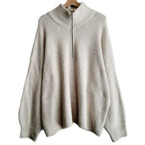 OLD NAVY Shaker-Stitch Half Zip Go-Recycled Pullover Sweater Ivory Sz XXL