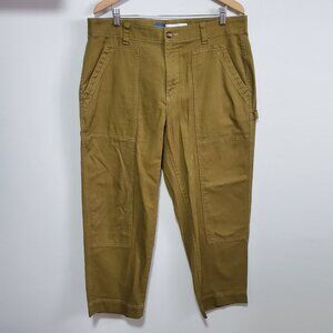 OLD NAVY Utility Straight Leg Pants 30" High Rise Carpenter Satin Moss Womens 16
