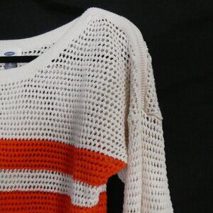 OLD NAVY | xl - extra large | White Open-Knit Orange Striped Sweater