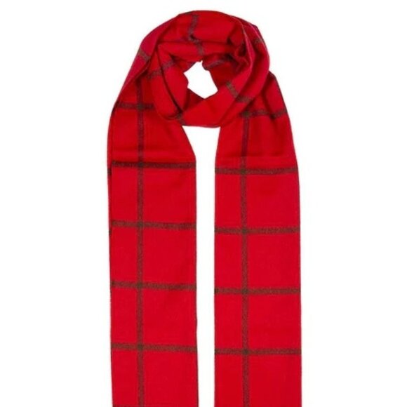 Super simple and soft oversized blanket scarf from Old Navy. Bright red with muted black plaid stripes. Light short fringe on the ends. Wool free so no itch! I've had it for years but it just hasn't come out of my closet. Get this in a bundle for a gorgeous closet discount! EUC.