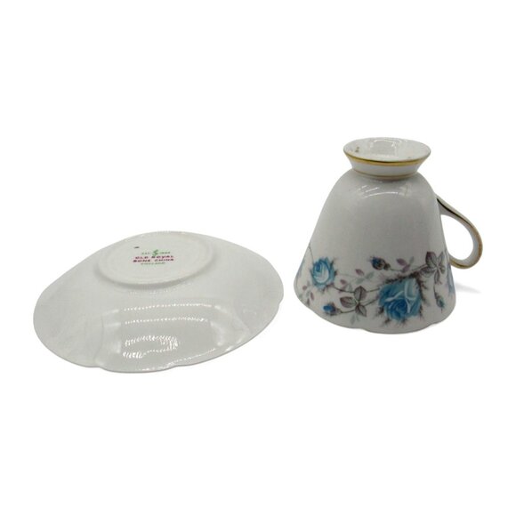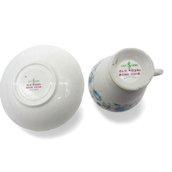OLD ROYAL Tea Cup and Saucer Blue Roses Set England Vintage