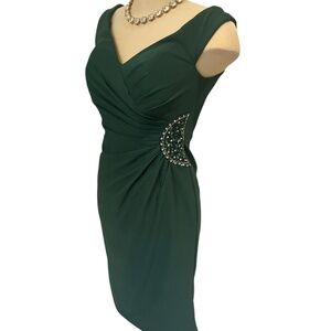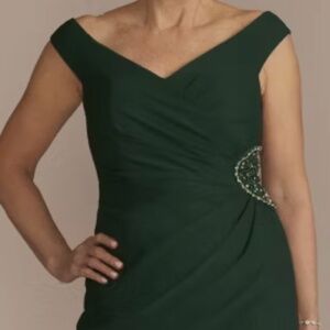 OLEG CASSINI Dress Size 4 Juniper Green Crepe Off Shoulder With Embellishments