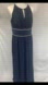 OLEG CASSINI Halter Rhinestone Empire Waist Slit Jersey Gown Dusty Royal Blue 12