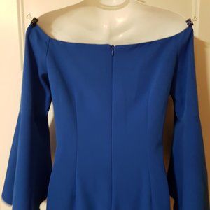 OLIMARA Blue Classy Cocktail Dress with 3/4 Bell sleeves, Made in Spain, sz 8/10
