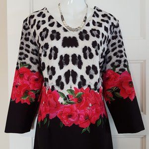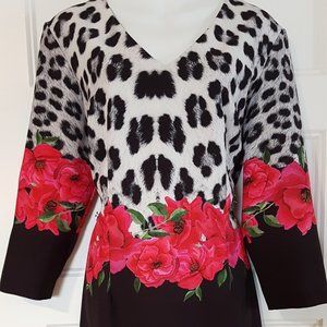 This attention grabbing dress is Black & White Animal Print & Floral,