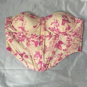 OLIVACEOUS Pauline Floral Boned Corset Top Pink Cream Push Up Padded Adjust S