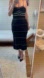Black & cream crochet dress with stationary spaghetti straps, waved knit at the bust & lined in black in a cotton blend fabric with some stretch.