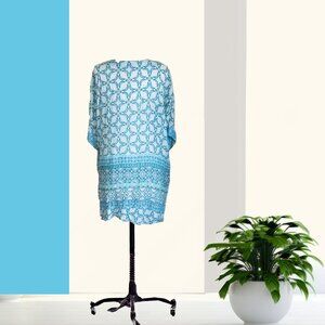 As new, beautiful and light beach/pool wrap. Aqua, white and a touch of lime. 100% viscose, Designed in Germany and made in China.
