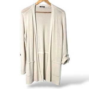OLSEN Linen Cotton Blend Open Front Cardigan Drawstring Back Roll Tab Sleeves 12