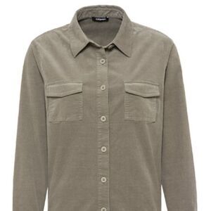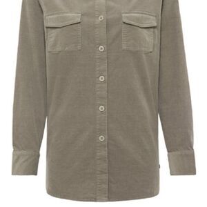 OLSEN Neo Bohemian Corduroy Button Down Shirt Khaki Green. Chunky thick corduroy shacket with microfine velvet corduroy. Two front pockets give it a cargo look. Oversized, relaxed fit makes it perfect for layering.