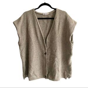 OLSEN Oversized V-Neck Sleeveless Chunky Knit Cardigan Sweater Tan O/S