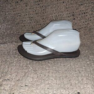 OLUKAI Ho'opio-Dark Brown Leather Thong Flip Flop Sandals-Sz 37/7-Excellent