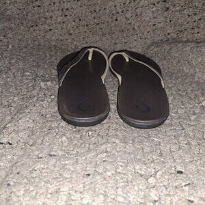 The OLUKAI Ho'opio Dark Brown Leather Thong Flip Flop Sandals in size 37/7 are a stylish and comfortable choice for women.