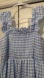 Features: Plaid print,ruffle shoulder strap, square neck, boho, maxi smocked dress.