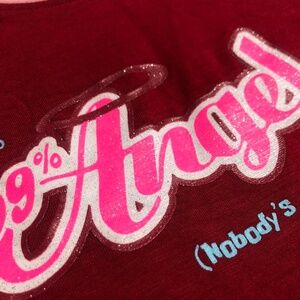 •O-Mighty Y2K styled 99% angel red pink glitter graphic baseball crop top 💋💫🪽