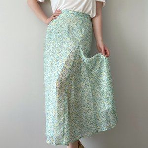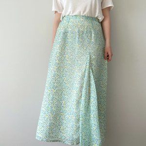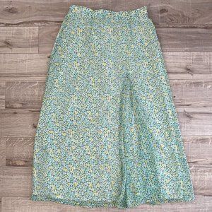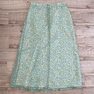 ON by Leboff Vintage Green White Yellow Floral Lined Long Maxi Skirt M
