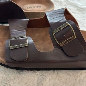 Stylish ONCAI sandals with double straps. Features a rich brown color. This Fashion Men's Sandals will be your first choice and is perfect for casual wear.