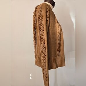 ONE A Tan Open Front Knit Sweater Cardigan With Back Fringe. Size XS