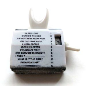 Give your correspondence a whiff of authority with the Office Jargon Rotating Stamp. Whether you’re in the loop or outside the box, just add ink to sound like you talk the talk. Or stamp the stamp.