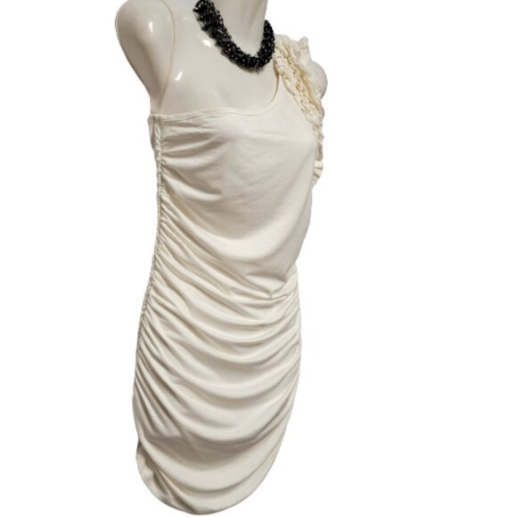 ONE Shoulder Body Con White Dress Mini Ruched Ruffle - Size S, Size M