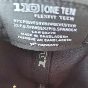 One Ten black ballcap with orange and grey lines embroidered detail. I am not sure what the logo represents, but I love the color contrast of the detail with the black. Velcro adjustable strap in the back.