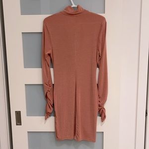ONE TO REMEMBER BLUSH BODYCON RUCHED LONG SLEEVE SHIRT DRESS