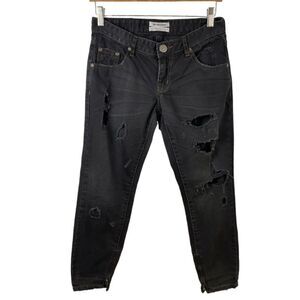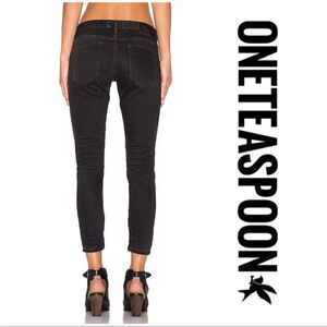 ONE Teaspoon Freebirds Low Waist Rigid Skinny Black Distressed Zip Jeans Size 25