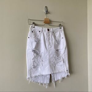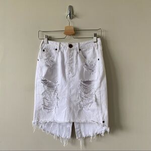 One teaspoon x 2020 high rise super fitted mid length skirt Distressed white denim (le creme)