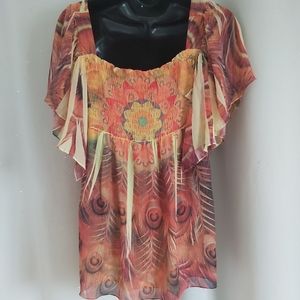ONE WORLD | Women's Floral Top Orange Yellow Size Large