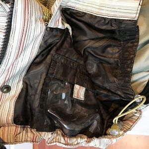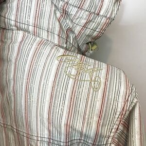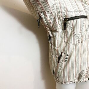 This jacket has everything! Front pockets, sleeve pocket, many inside pockets. Adjustable sleeve opening closure and bottom hem. Inside storm closure with 2 snaps. This jacket is waterproof, hood is detachable, underarm zipper cool off opening. Back shoulder logo embroidery.