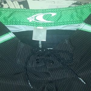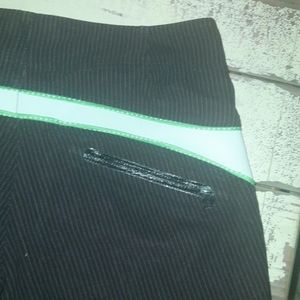 16" waist lying flat. Zippered pocket in back, tie closure. Polyester/spandex. Stage says 3 but measures as a youth L.