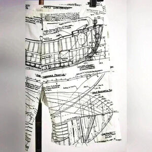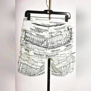 ONIA White Black Blueprint Architect Drawing Swim Trunk Shorts 29W