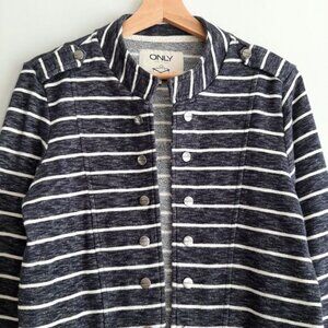 ONLY Anette Military Uniform Style Open Front Blazer Jacket Casual Stripe Sz 4 S