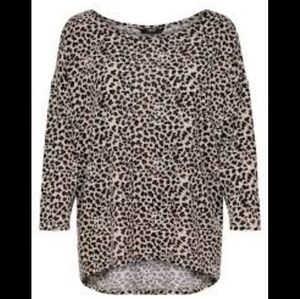 Oversized Loose Fit High Low 4/5 Long Sleeve Animal Print Pink & Black ONLY Top