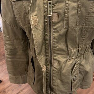 ONLY Army Green Utility Canvas Jacket w/ Hood | Drawstring Waist | M