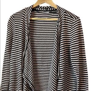ONLY Black & Tan Striped Knit Open Loose Fit Cardigan Sweater M