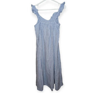 ONLY Blue Denim Maxi Blue & White Stripped V Neck Sleeveless Ruffle Dress Small