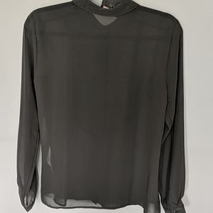 NEW WITH TAGS. Sheer material. Animal print details on chest and collar. Button enclosure on sleeves.